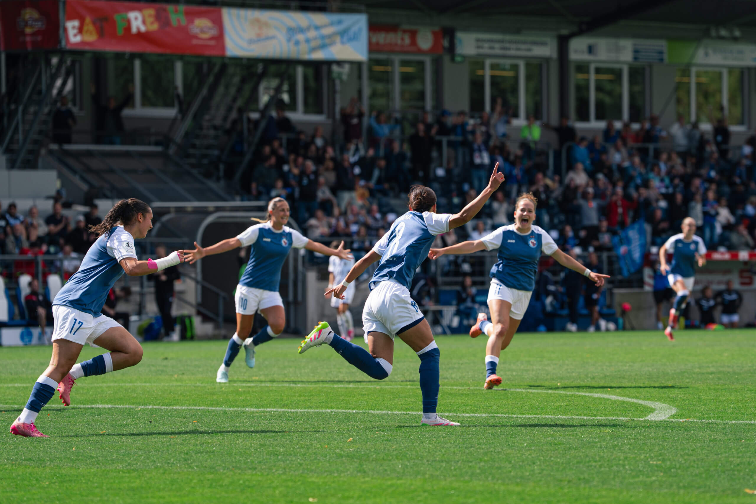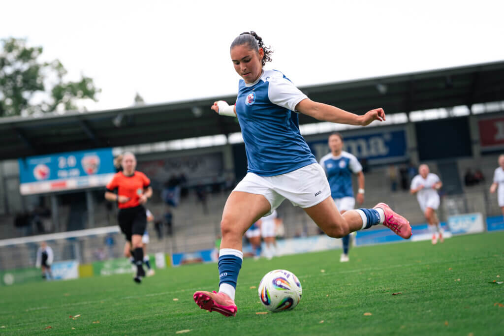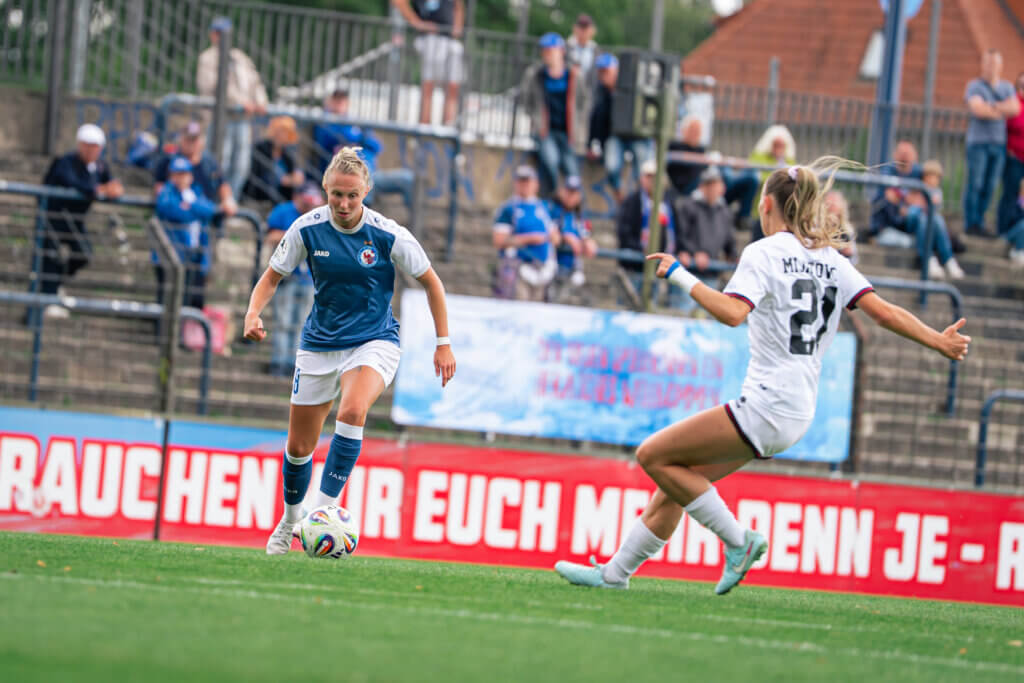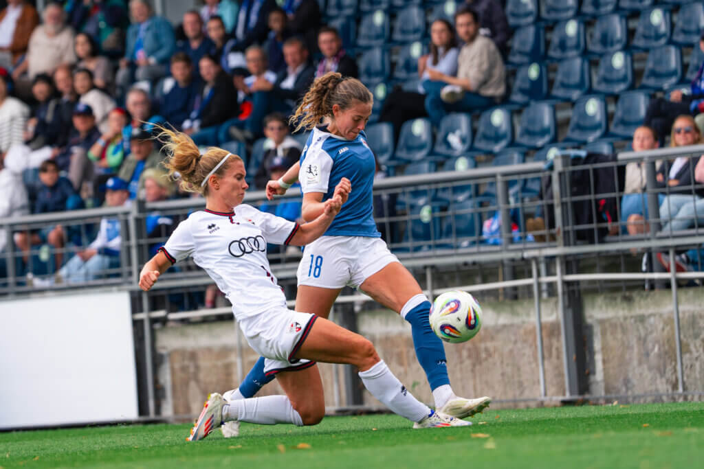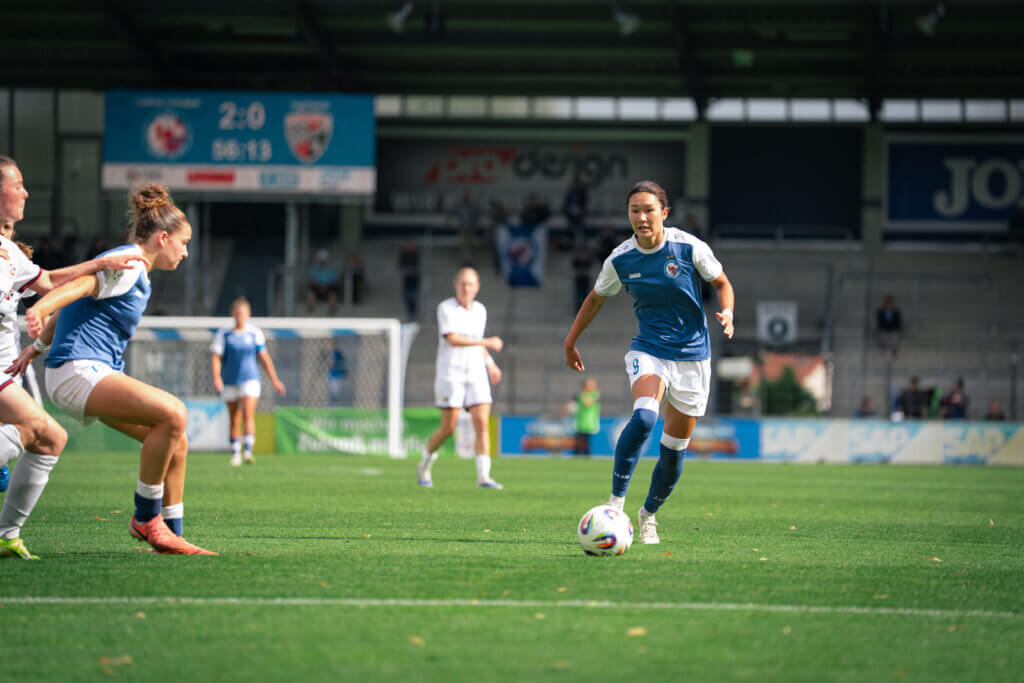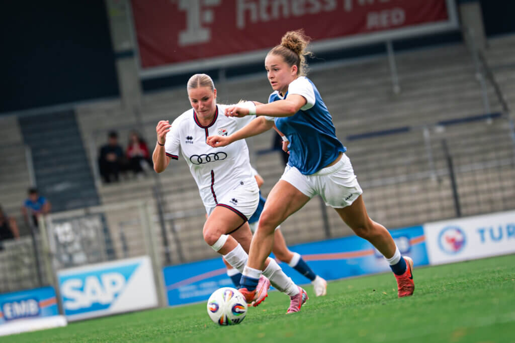 Dann folgte der nächste Gänsehautmoment: Nach einem Ballgewinn von Emilie Bernhardt leitete diese einen schnellen Angriff ein, über Okuma und schließlich Alina Gnädig, die ins rechte obere Eck traf – ein sehenswerter Treffer zum 2:0 (38.). Kurz vor der Pause hatte Hampel nach einem Doppelpass mit Gnädig sogar das 3:0 auf dem Fuß, doch erneut rettete die Ingolstädter Torhüterin.