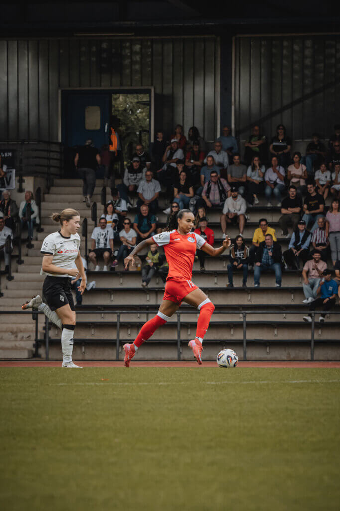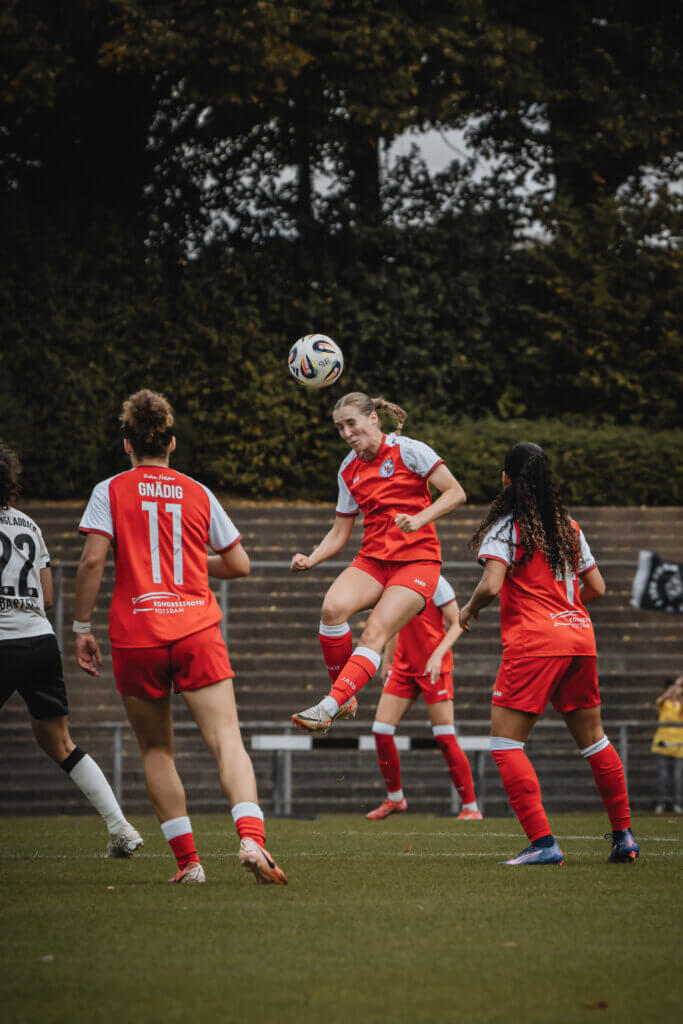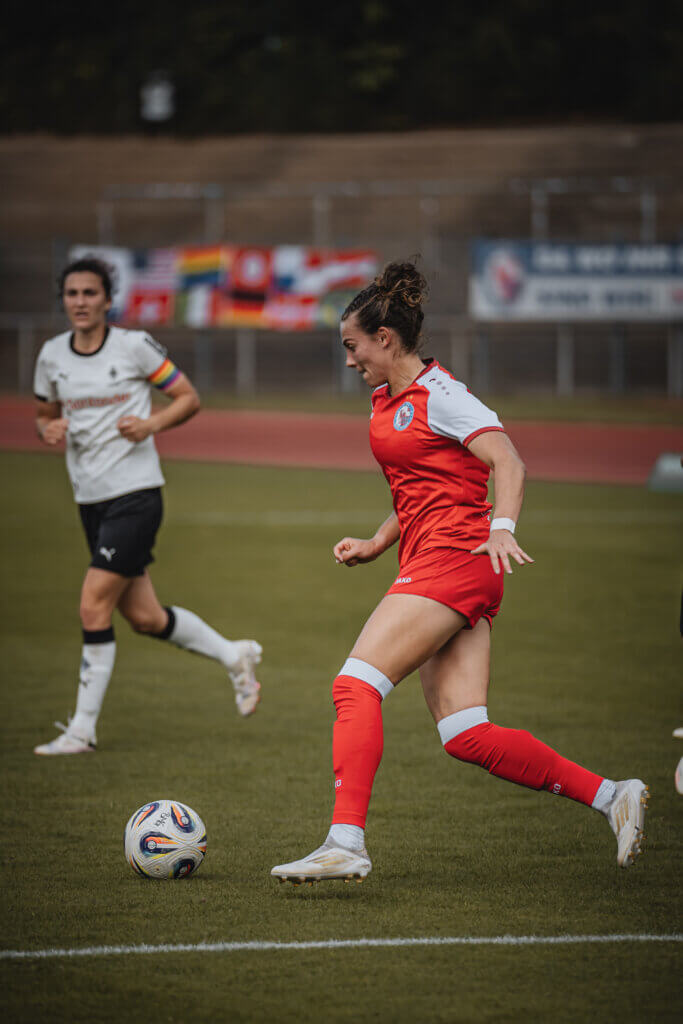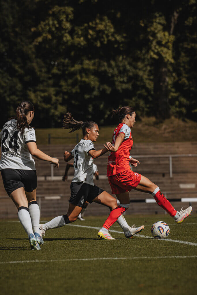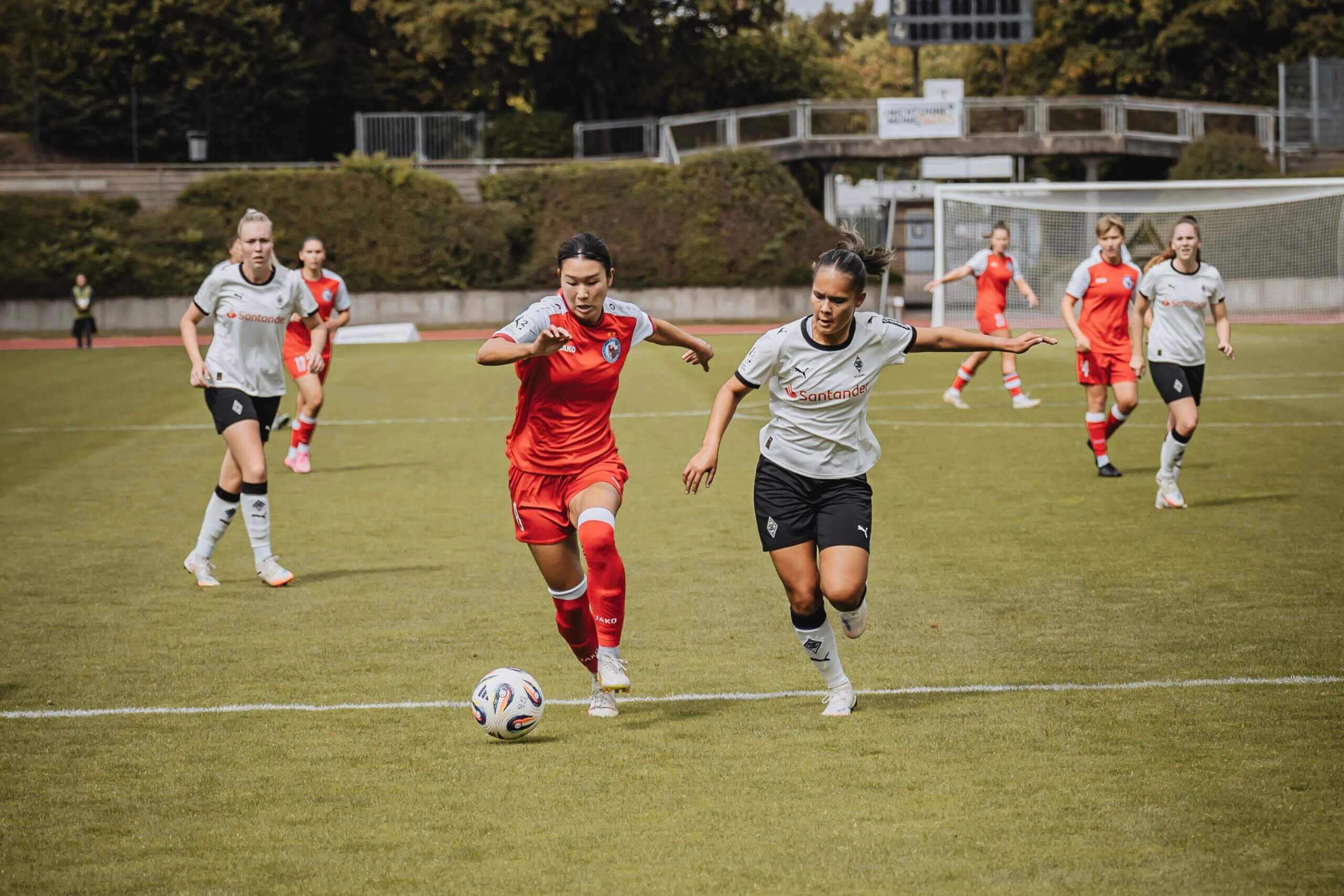 Das Spiel blieb intensiv und umkämpft. Gladbach zeigte sich insbesondere über die schnellen Außenspielerinnen gefährlich und kam in der 20. Minute durch einen Kopfball zu einer weiteren Möglichkeit. Auf der Gegenseite versuchten Amani Mahmoud, Emilie Bernhardt und Annika Wohner, mit Distanzschüssen und Kombinationen für Gefahr zu sorgen.
