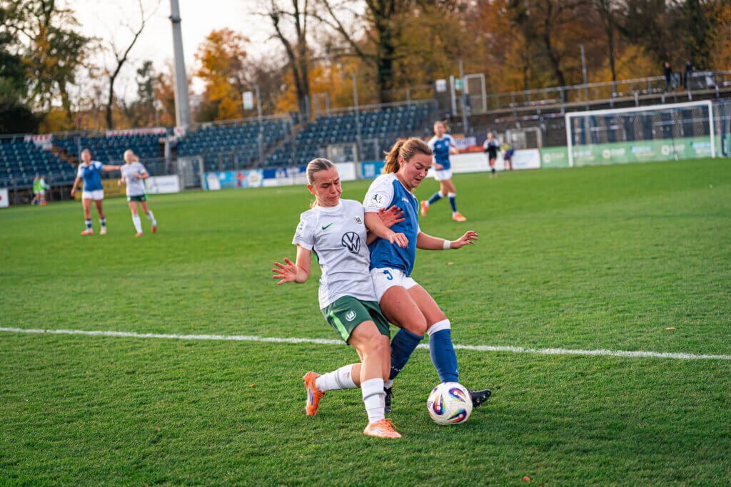 Wolfsburg nutzte in dieser Phase die Unsicherheiten unserer Defensive: In der 41. Minute traf erneut Papp aus der zweiten Reihe zum 0:2-Pausenstand. Kurz vor dem Halbzeitpfiff verpasste Rana Okuma per Kopf nur knapp den Anschlusstreffer (45.+4).