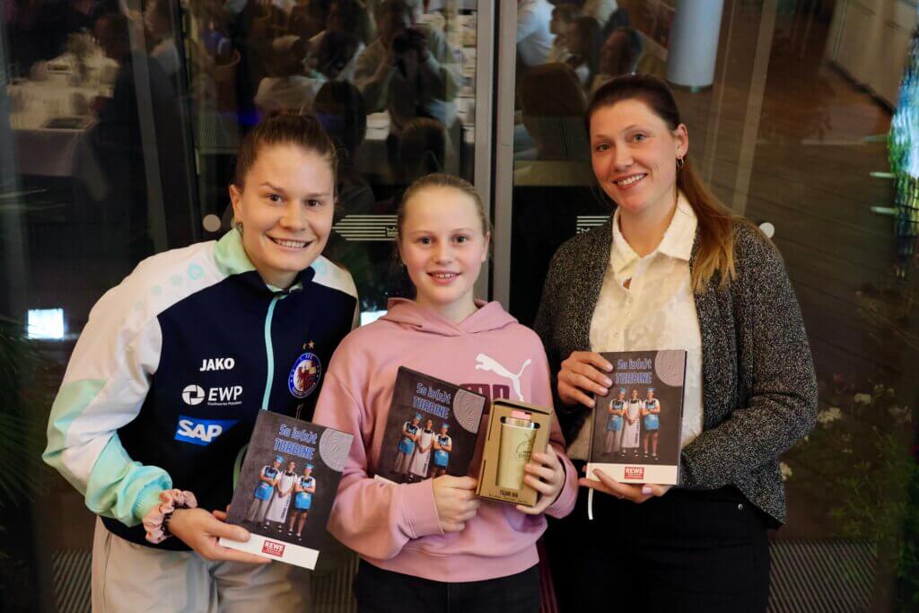 Besonders schön: Nachwuchsspielerinnen ließen sich ihre Kochbücher und Autogrammkarten von den Spielerinnen signieren und nutzten die Gelegenheit für einen regen Austausch – Erinnerungen, Tipps und Geschichten rund um Fußball und Kochen inklusive.