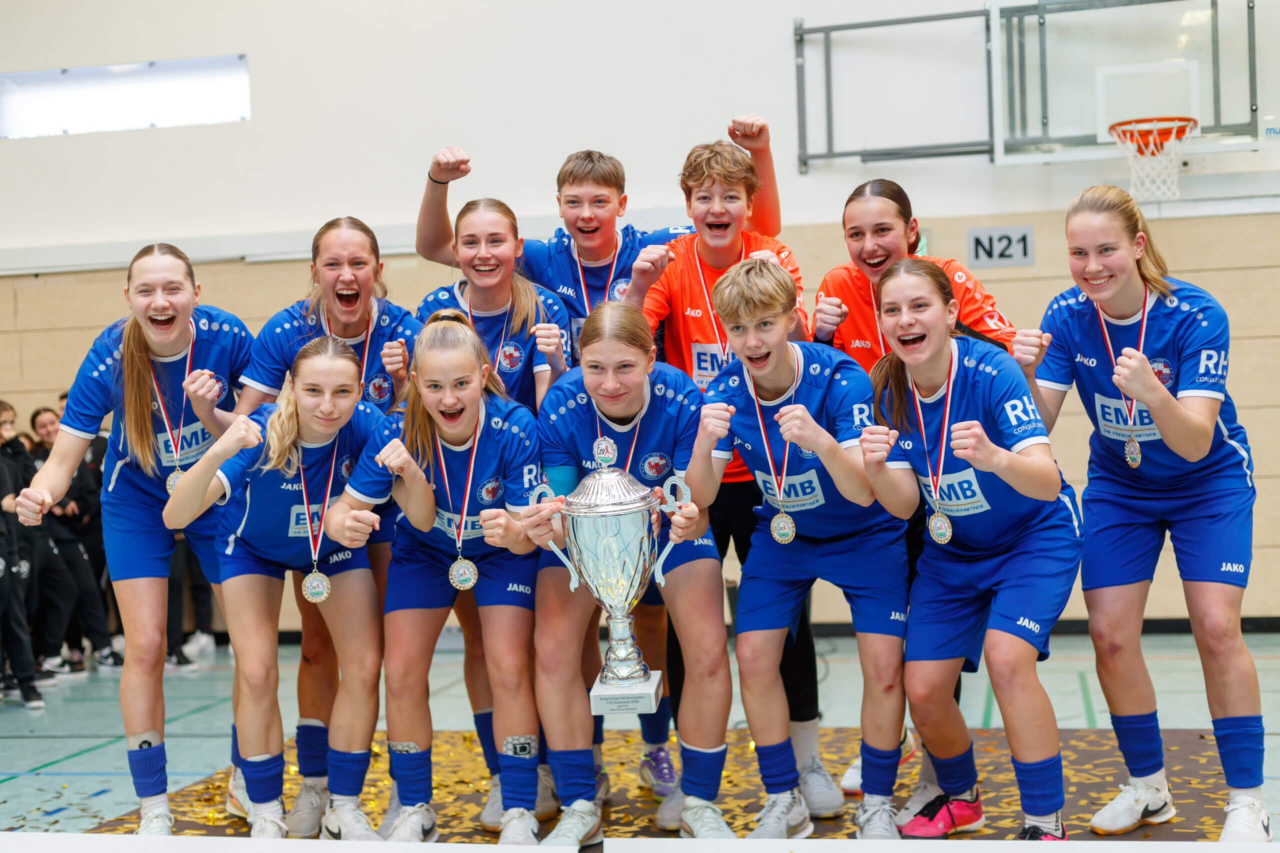 Im Anschluss überreichte Landrätin Ina Laukötter den großen Pokal an Kapitänin Paula Scharras, bevor die Spielerinnen den verdienten Erfolg im Konfettiregen feierten.