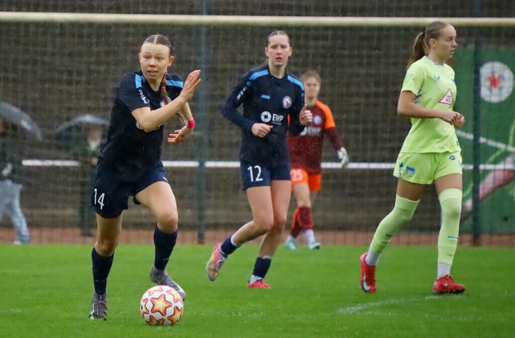 Von Beginn an entwickelte sich ein intensives Spiel, in dem die Potsdamerinnen mit viel Einsatz und hoher Laufbereitschaft agierten. Die Mannschaft präsentierte sich insgesamt sehr geschlossen und setzte die im Training erarbeiteten Inhalte sichtbar auf dem Platz um. Besonders die klare Umsetzung der taktischen Schwerpunkte sowie die Intensität im Spiel gegen den Ball und in den Umschaltmomenten waren deutlich erkennbar.
